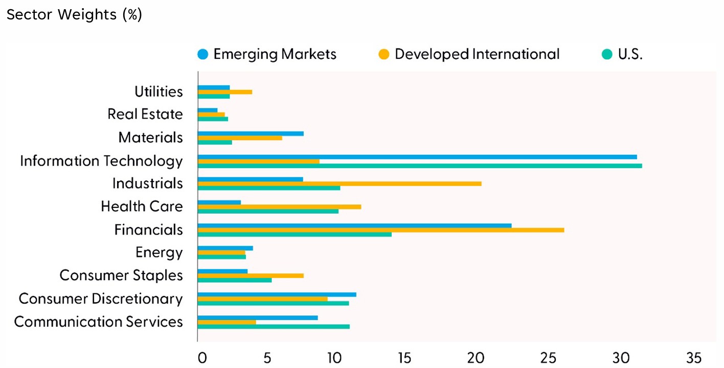 Disclosure: Earnings data based on MSCI EAFE, MSCI Emerging Markets, and S&P 500 Indexes.