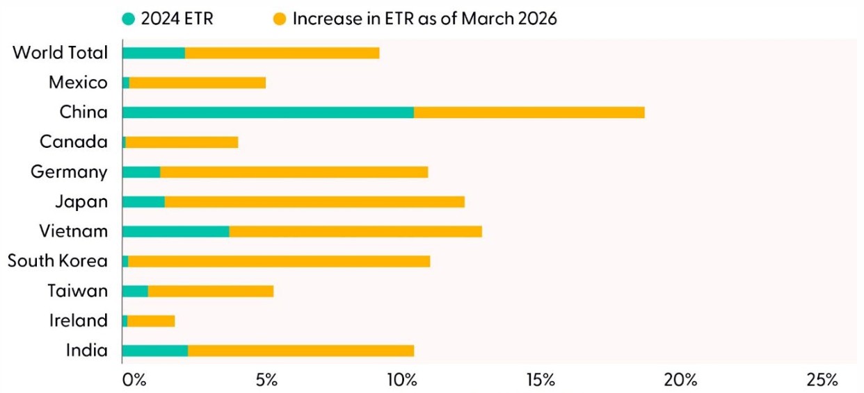The reinstated 10% blanket reciprocal tariff under Section 122 of the Trade Act of 1974 marks a notable shift in trade policy, lowering the U.S. effective tariff rate (ETR) to 9.4% from the earlier 12.7% imposed through International Emergency Economic Powers Act (IEEPA) authorities. This reduction stems largely from the retention of prior carve outs, such as those for passenger vehicles, pharmaceuticals, United States-Mexico-Canada Agreement (USMCA) compliant goods, and select electronics, which continue to blunt the impact of tariffs. While the current authorization expires in 150 days without congressional action, the administration retains the ability to raise the levy to a maximum of 15%, a move that would lift the ETR to 11.3%. However, Section 122 does not permit tailor made tariff adjustments by country, limiting the administration’s flexibility even as it increasingly uses tariffs as both a revenue tool and a policy instrument. The administration hopes to make these tariffs permanent using Section 301 which requires investigations of each trading partner and takes several months to complete.